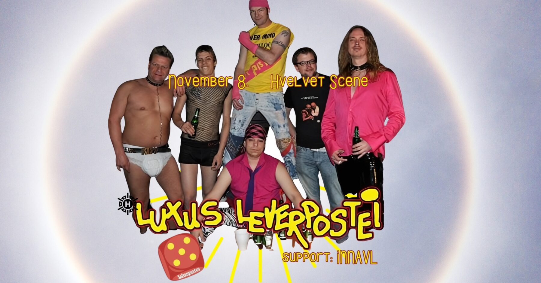 Dørene åpner 19:30 Showstart 21:00 Luxus Leverpostei består av 5. Glade gutter fra Kvinesdal, i sin beste alder. Luxus har spilt over hele landet i haugevis av år og de er blitt dyktige i sin jobb. De har fått meget positive tilbakemeldinger fra publikum, men langt mindre fra pressen. Dette mye…