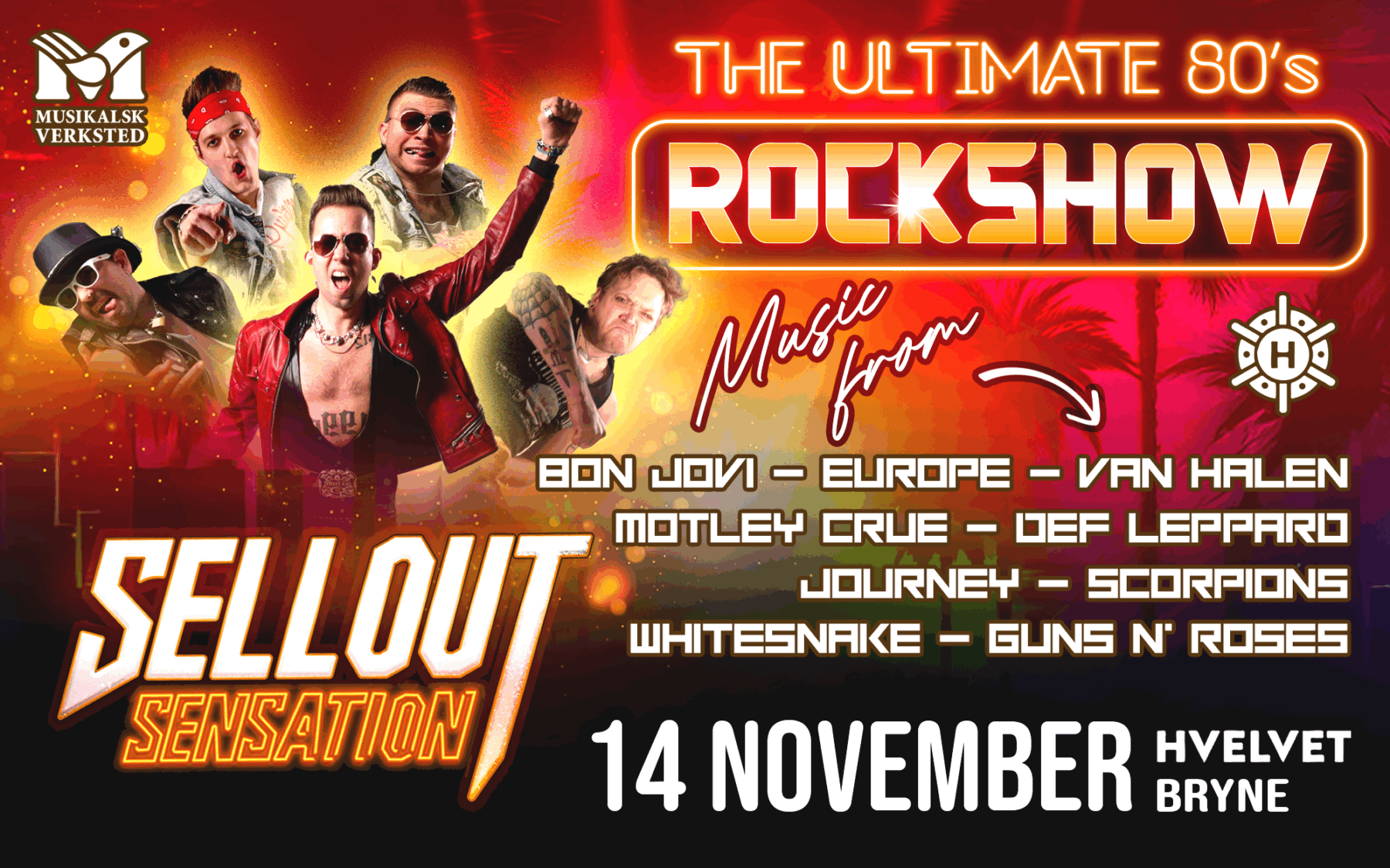 Dørene åpner 19:30 Konsertstart 21:00 Etter et forrykende debutshow på Fiskepiren kjører gutta på igjen, denne gangen på Hvelvet, Bryne! 14. november forvandles Bryne til et fyrverkeri av tatoveringer, skinn, hårspray og rå energi. Her får du de største hitene fra rockens gullalder – Bon Jovi, Europe, Van Halen, Mötley…